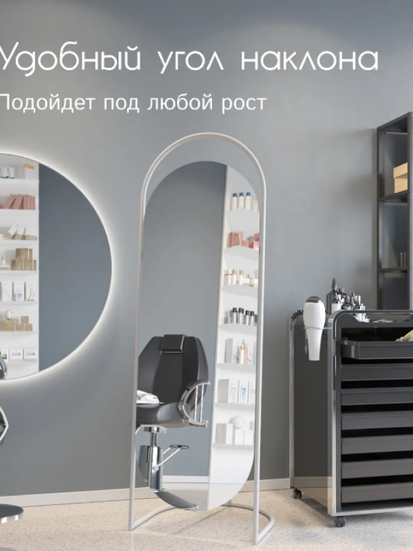 Зеркало «Queen». Артикул GMZ-01-1/2/3 Дизайнерское напольное зеркало в полный рост в металлической овальной раме ручной работы выполнено в минималистичном стиле. Простая изысканность форм и современный дизайн делает его уместным практически в любом интерьере. Оно может быть установлено в спальне, прихожей, гостиной, где за счёт своих внушительных размеров способно расширить пространство и создать иллюзию источника освещения. Зеркальное полотно изготовлено известным бельгийским производителем AGC и воплощает в себе старинные европейские традиции в совокупности с новейшими технологиями изготовления стекла. Наклон зеркала оптимальный фиксированный, что позволяет отражать любой рост.Характеристики:– профиль рамы – труба, диаметром 20 мм; – габариты – 1650х540х400 мм; – размер зеркального полотна – 1350х500 мм, толщина – 4 мм; – вес – 11 кг; – устойчивая двухслойная порошковая окраска; – возможные цвета – золотой, чёрный, белый.